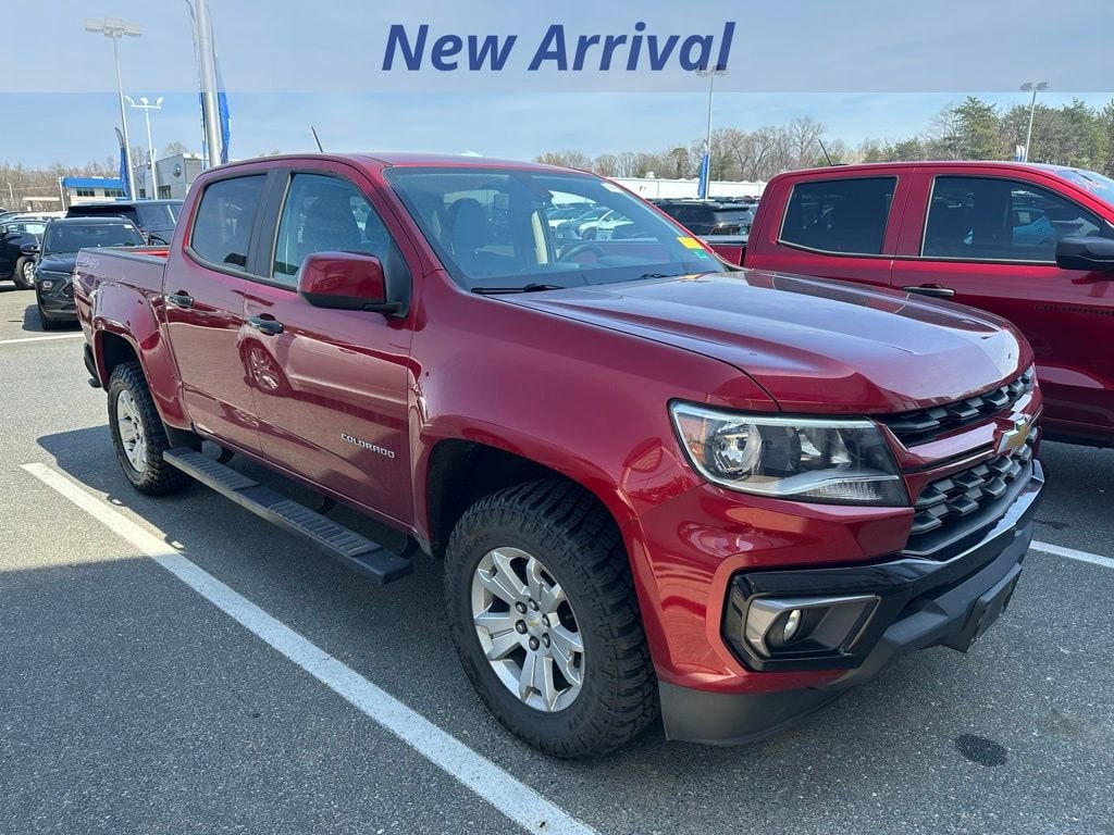 ** RADLEY VIP INCLUDED** Oil changes, tire rotations, alignment checks, engine light diagnostics and state inspection. Our goal is to make sure your next purchase will result in a high quality trade in later on down the road. CARFAX One-Owner. Clean CARFAX.17/24 City/Highway MPGCherry Red 2021 Chevrolet Colorado LT V6 4WD 8-Speed Automatic Certified.3.42 Rear Axle Ratio, 4-Wheel Disc Brakes, 6 Speakers, 6-Speaker Audio System Feature, ABS brakes, Air Conditioning, Alloy wheels, AM/FM radio: SiriusXM, Apple CarPlay/Android Auto, Auto-dimming Rear-View mirror, Bumpers: body-color, Cloth Seat Trim, Compass, Delay-off headlights, Driver 6-Way Power Seat Adjuster, Driver door bin, Driver vanity mirror, Dual front impact airbags, Dual front side impact airbags, Electronic Stability Control, Enhanced Driver Instrument Information Display, Exterior Parking Camera Rear, Front anti-roll bar, Front Bucket Seats, Front Center Armrest, Front Fog Lamps, Front License Plate Kit, Front reading lights, Front wheel independent suspension, Fully automatic headlights, Illuminated entry, Low tire pressure warning, LT Convenience Package, Manual Rear-Sliding Window, Occupant sensing airbag, Outside Heated Power-Adjustable Body-Color Mirrors, Outside temperature display, Overhead airbag, Overhead console, Panic alarm, Passenger door bin, Passenger vanity mirror, Power door mirrors, Power driver seat, Power steering, Power windows, Preferred Equipment Group 4LT, Premium audio system: Chevrolet Infotainment 3, Radio data system, Radio: Chevrolet Infotainment 3 System, Rear reading lights, Rear seat center armrest, Rear step bumper, Rear Vision Camera, Rear-Window Electric Defogger, Remote keyless entry, Remote Vehicle Starter System, Security system, SiriusXM Radio, Speed control, Speed-sensing steering, Steering wheel mounted audio controls, Tachometer, Telescoping steering wheel, Tilt steering wheel, Traction control, Trip computer, Variably intermittent wipers, Wheels: 17 x 8 Blade Silver Metallic Cast Alloy.Chevrolet Certified Pre-Owned Details:* Powertrain Limited Warranty: 72 Month/100,000 Mile (whichever comes first) from original in-service date* Transferable Warranty* 24 months/24,000 miles (whichever comes first) Certified Pre-Owned Scheduled Maintenance Plan and 3 days/150 miles (whichever comes first) Vehicle Exchange Program. SiriusXM 3-month trial subscription.* Limited Warranty: 12 Month/12,000 Mile (whichever comes first) from certified purchase date* Warranty Deductible: $0* Vehicle History* Roadside Assistance* 172 Point InspectionThis vehicle is located at Radley Chevrolet 11301 Patriot Hwy Fredericksburg VA 22408. Phone 5408984000.