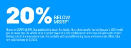 All vehicle prices, specifications, equipment, features, incentives, and availability are subject to change without notice and expire at the end of each business day. Prices apply to in-stock units only and may vary based on market conditions.